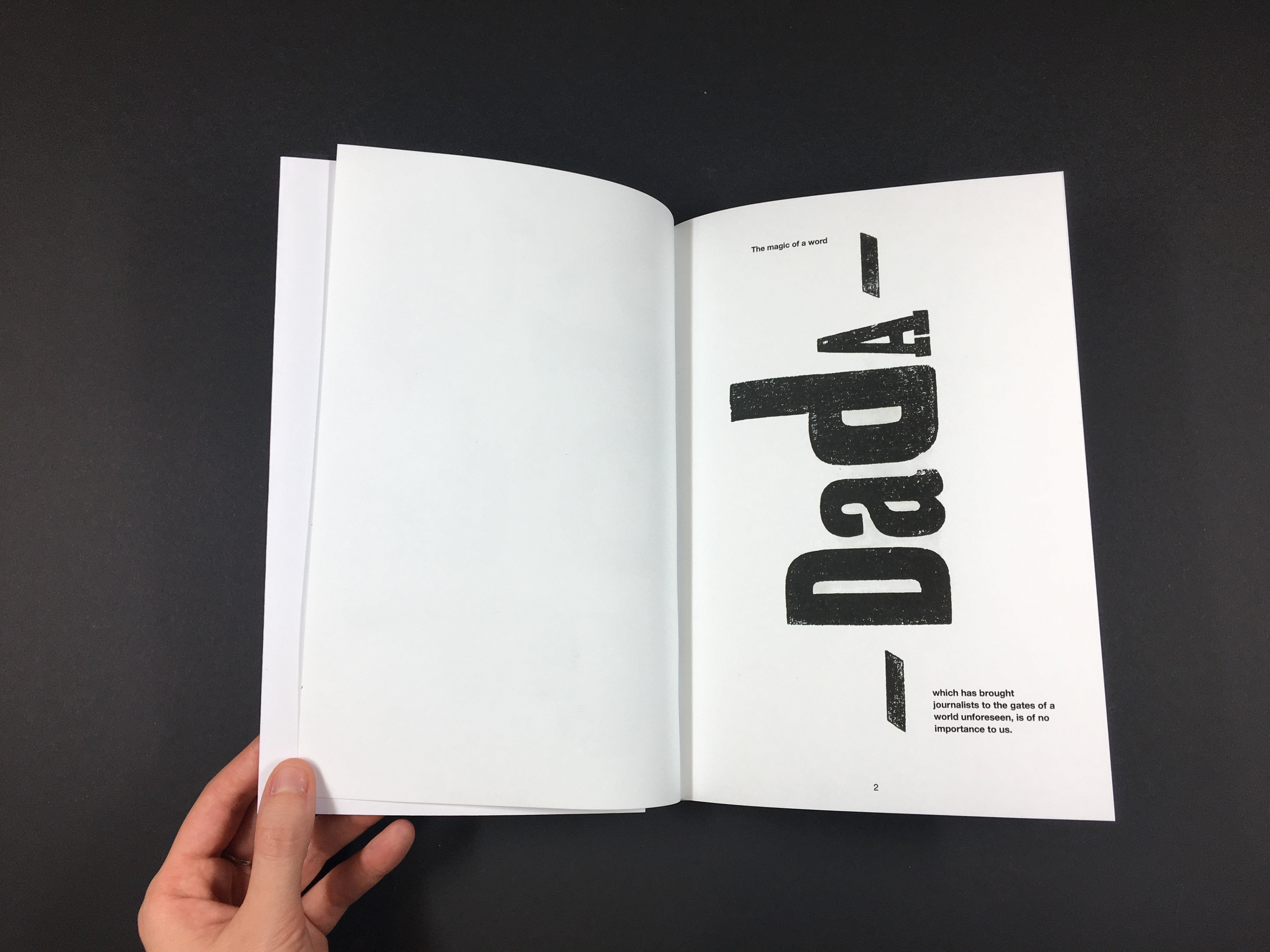 This design embodies the spirit of Dada by challenging linear reading and traditional form, transforming the act of reading into an interactive, exploratory experience.